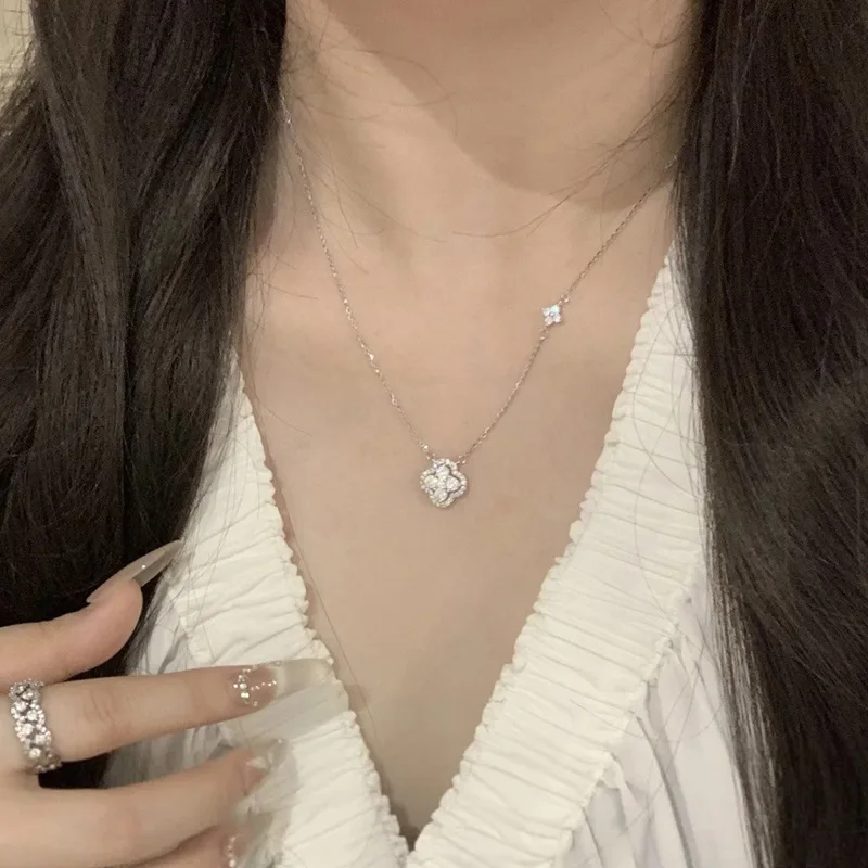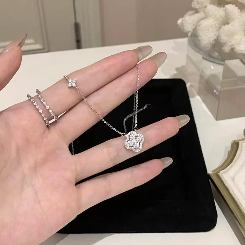 925 Sterling Silver Crystal 4-leaf Clover Clavicle Chain Necklace Pendant For Women Wedding Jewelry Gift Collar New in Necklace