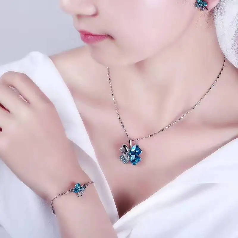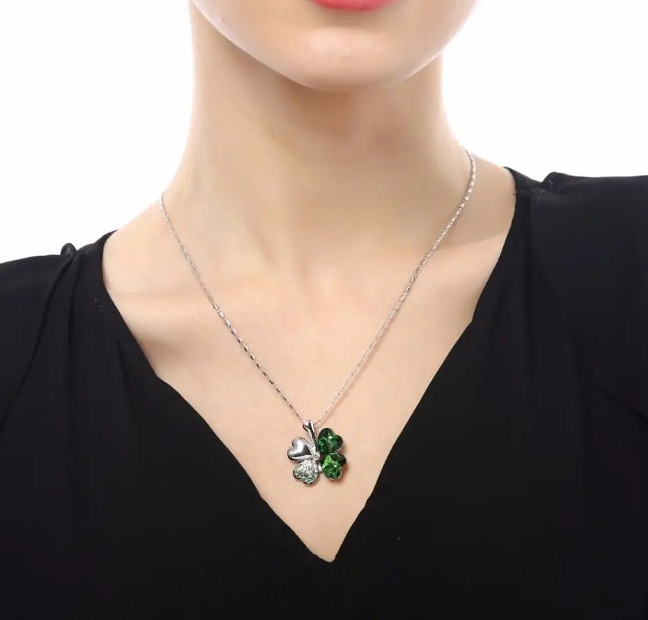 Crystal 4 Four Leaf Leaves Clover pendant necklaces lover birthday gift quality fashion jewelry dropshipping charm girls wedding